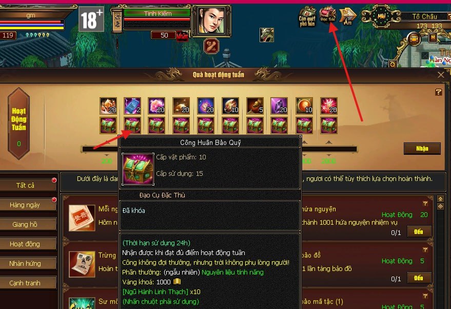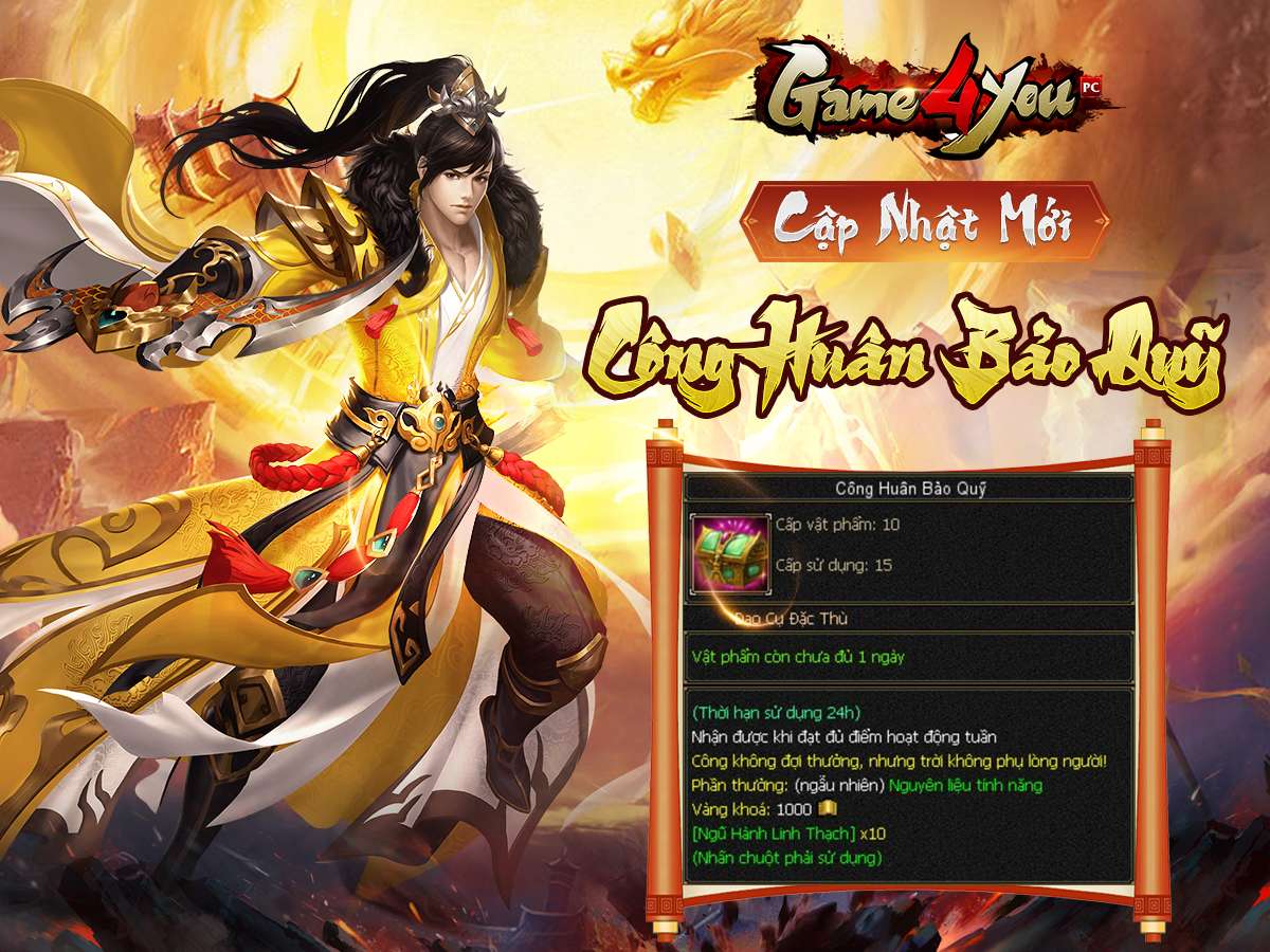 Công Huân Bảo Quỹ là phần thưởng nhận được khi người chơi đủ điểm Hoạt Động Tuần. Tại máy chủ Hợp Kiếm và Phi Long Kiếm, Quà Hoạt Động Tuần đã được điều chỉnh từ ngày 27/1/2026 nhằm phù hợp hơn với nhịp độ hành tẩu và trải nghiệm của chư vị trong giang hồ.