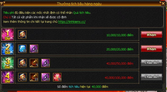 - Cập nhật Quà Thưởng Tiêu Phí Hằng Ngày