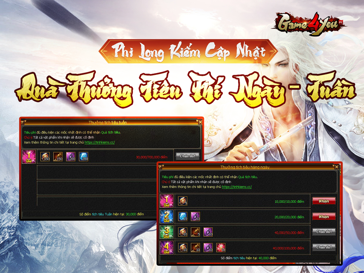 Kể từ sau bảo dưỡng định kỳ ngày 1/2/2026, máy chủ Phi Long Kiếm sẽ cập nhật Quà Thưởng Tiêu Phí Ngày và Quà Thưởng Tiêu Phí Tuần.